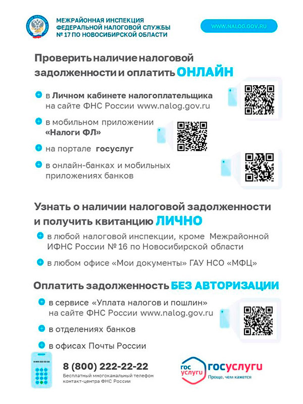 Межрайонная инспекция Федеральной налоговой службы №17 по Новосибирской области предлагает жителям региона не оставаться в долгу перед бюджетом.